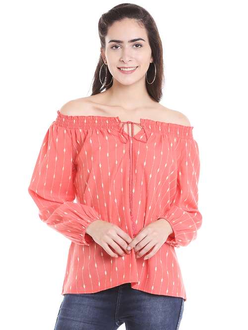 - » tie up smocked off shoulder top