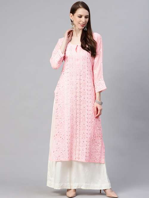 - » ada hand embroidered pink chikankari kurta with gota patti work & matching slip