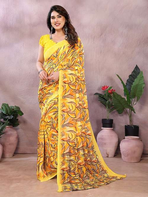 Add effortless elegance to your wardrobe with this flattering printed georgette saree, designed for the modern woman who values comfort and style. Crafted from lightweight georgette fabric, this saree features a soft, flowing drape that complements your silhouette beautifully. The all-over print adds a touch of charm, making it perfect for both office wear and casual day outings.