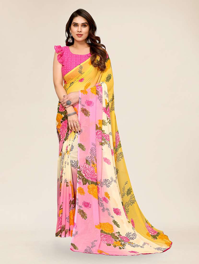 women printed casual wear saree with blouse