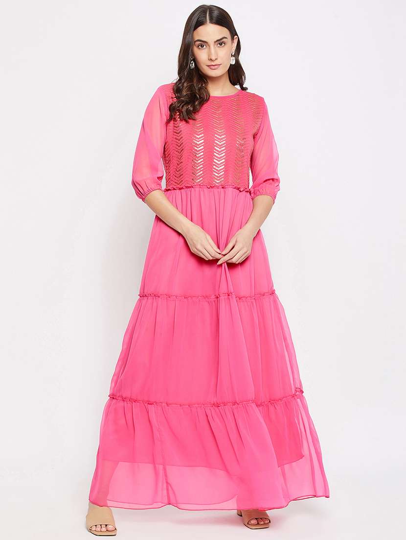 - » pink georgette fit & flare ethnic dress