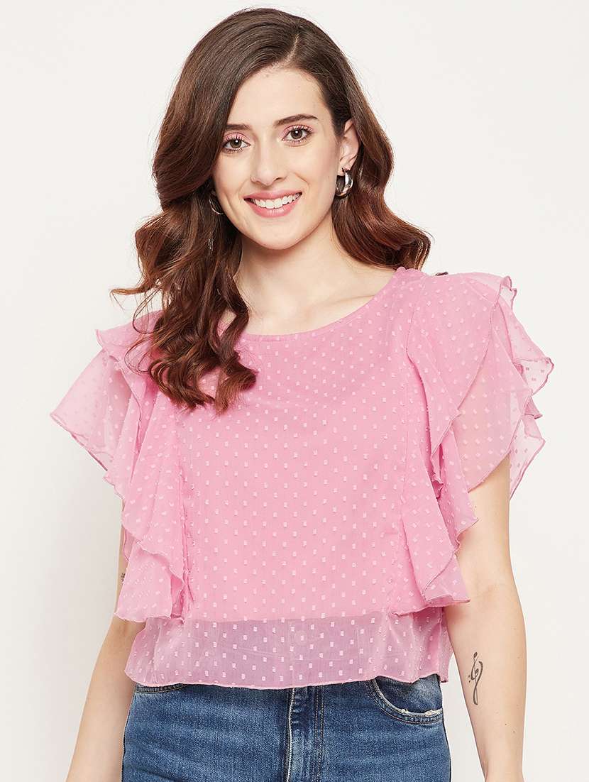 - » women pink ruffle sleeve top