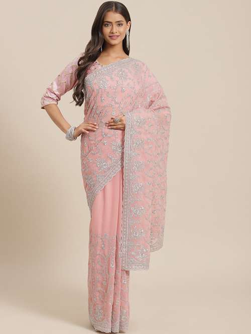 - » pink embroidered saree
