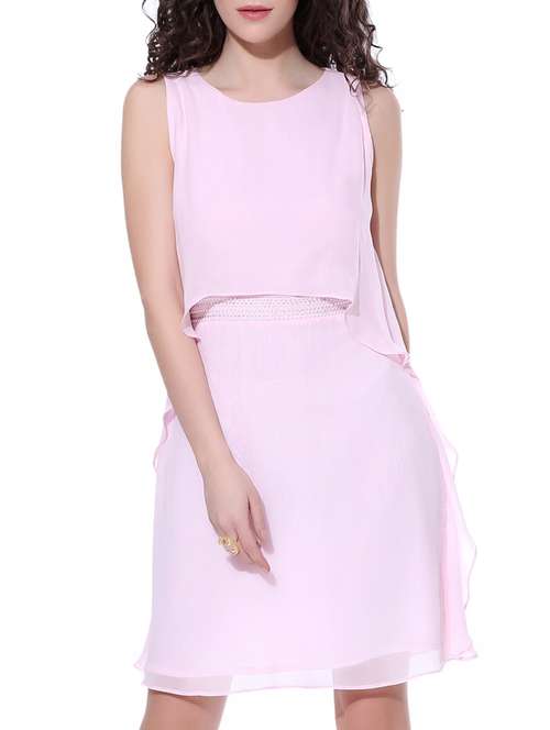 - » Baby pink embellished georgette sleeveless dress
