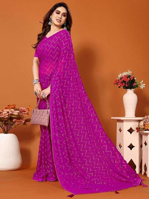 Embellished Georgette Saree with Cutwork Blouse Magenta