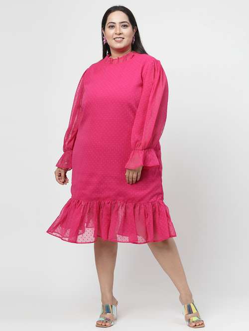 women pink self design detailed plus size dress