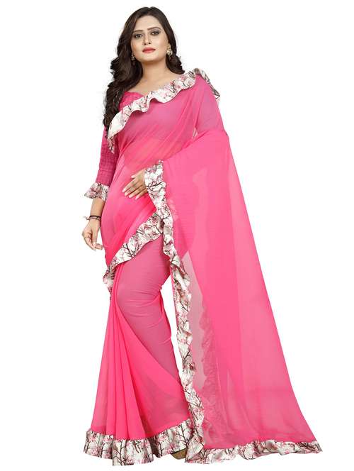 women solid with ruffle bordered saree with blouse - 22060493 - Very Small Image - 1
