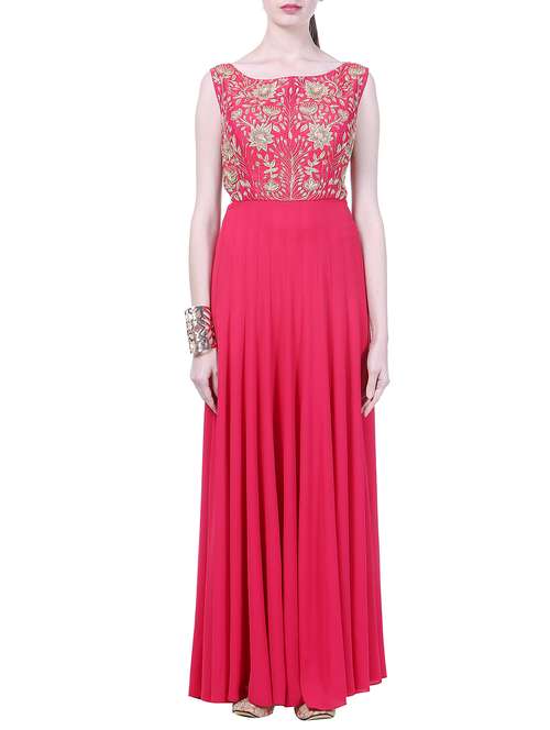 - » hot pink embroidered georgette gown