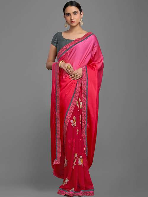 - » women's floral pink colored saree with blouse