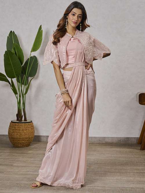 women nude solid lace work saree with blouse - 21034051 - Very Small Image - 1