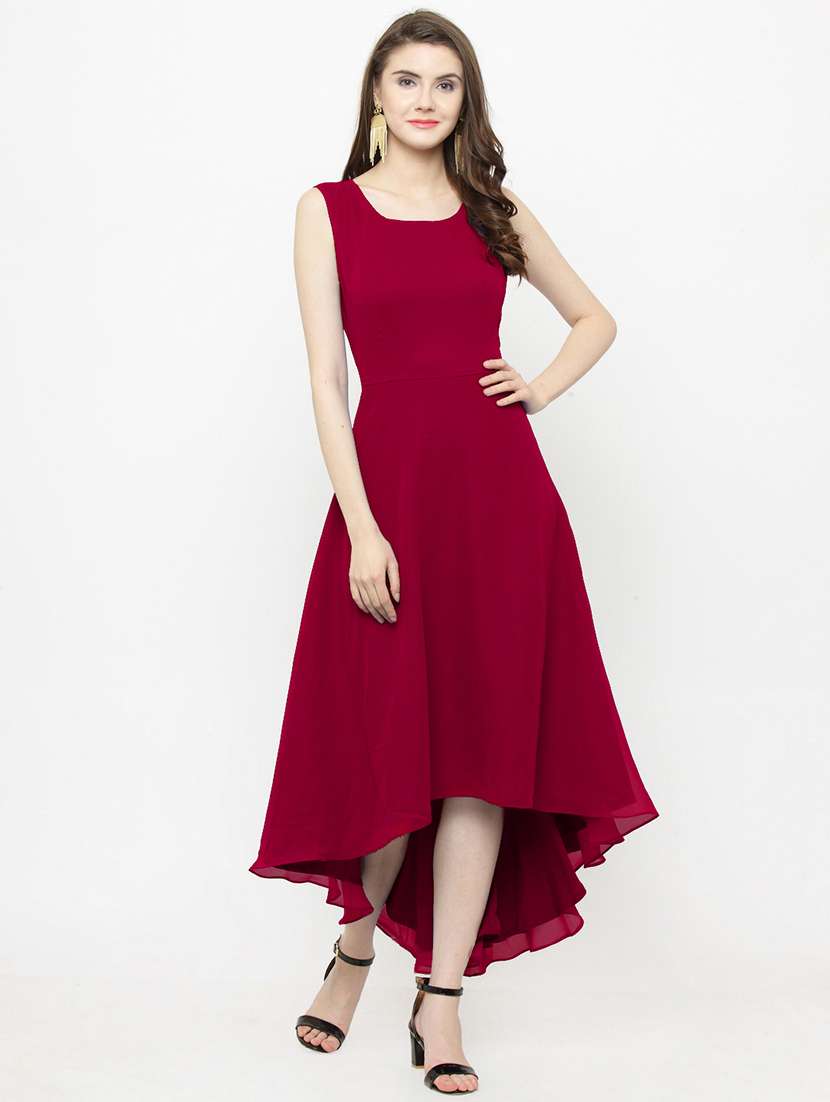 - » pink solid georgette assymetric dress