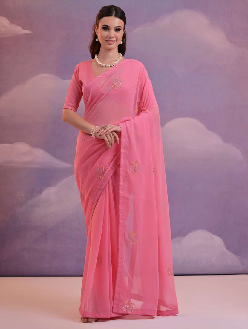 - » women pink sequin work embroidered saree