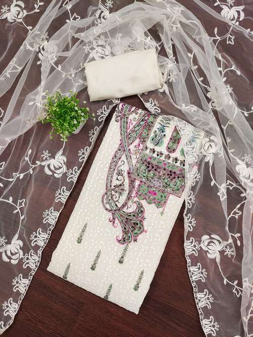 - Look ultra gorgeous in unstitched suits from Leeli Peeri Designer and grab these beautiful suits in white colour.