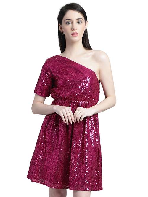 - » magenta sequin work a-line dress