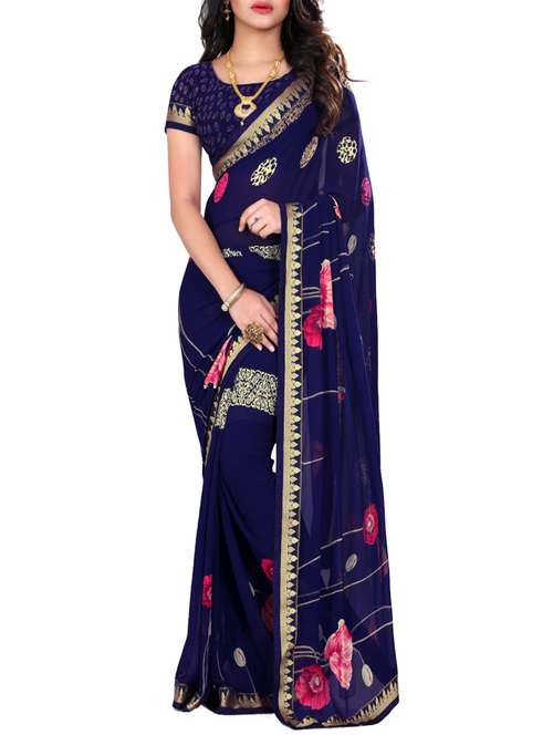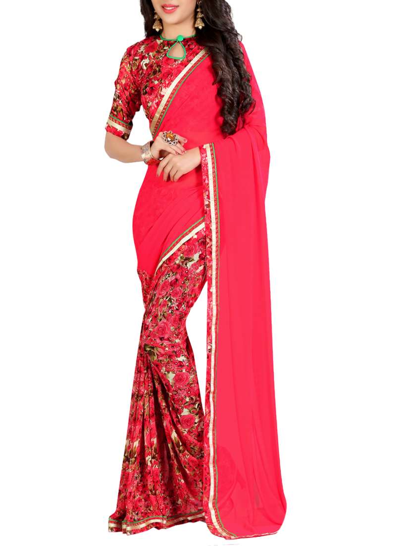 - » pink georgette printed saree with blouse
