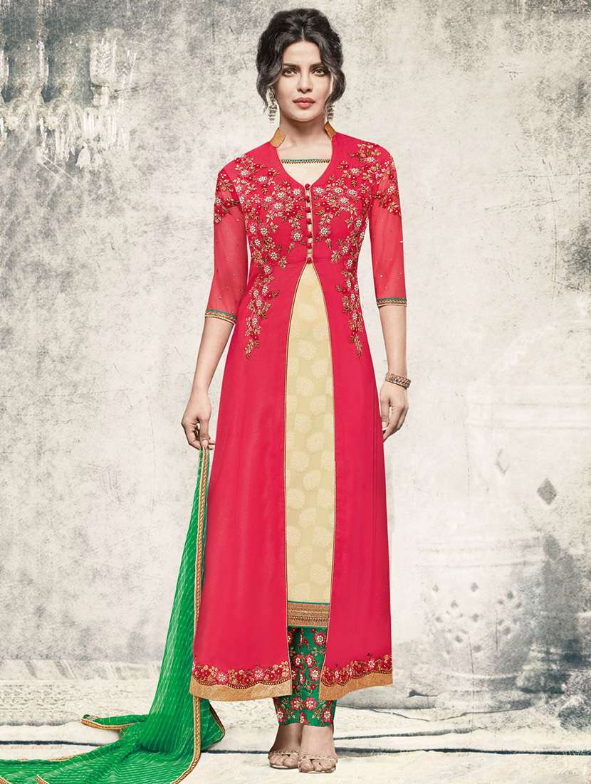 - Find versatile complete set of semi-stitched suits in trending designs in pink colors suitable for a number occasions.