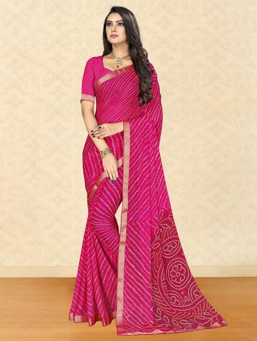 bandhani printed saree with blouse - 17269222 - Very Small Image - 1