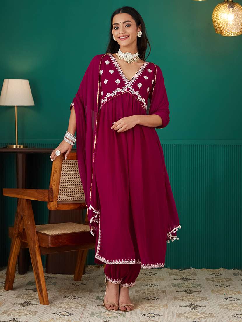 - Find gorgeous sets of ethnic wears in trending designs in magenta colors suitable for festive wear of occasions.