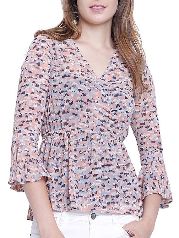 - » printed flared hem top