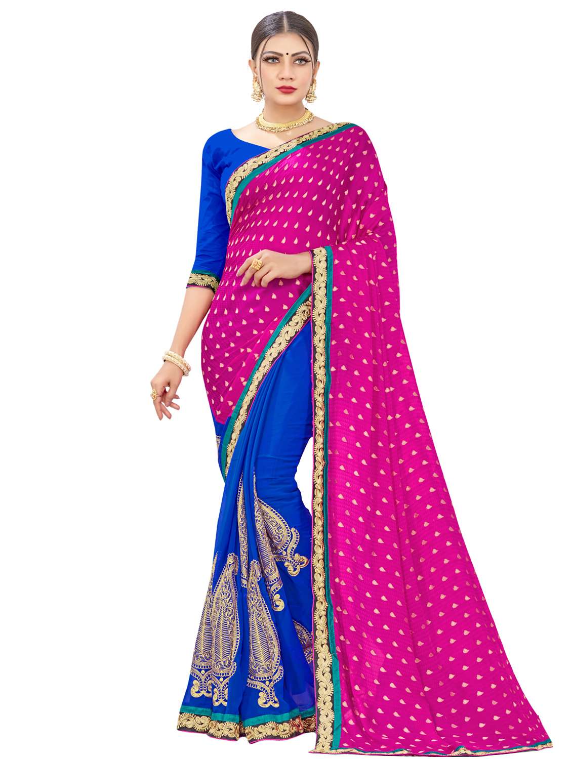 - » printed half & half saree