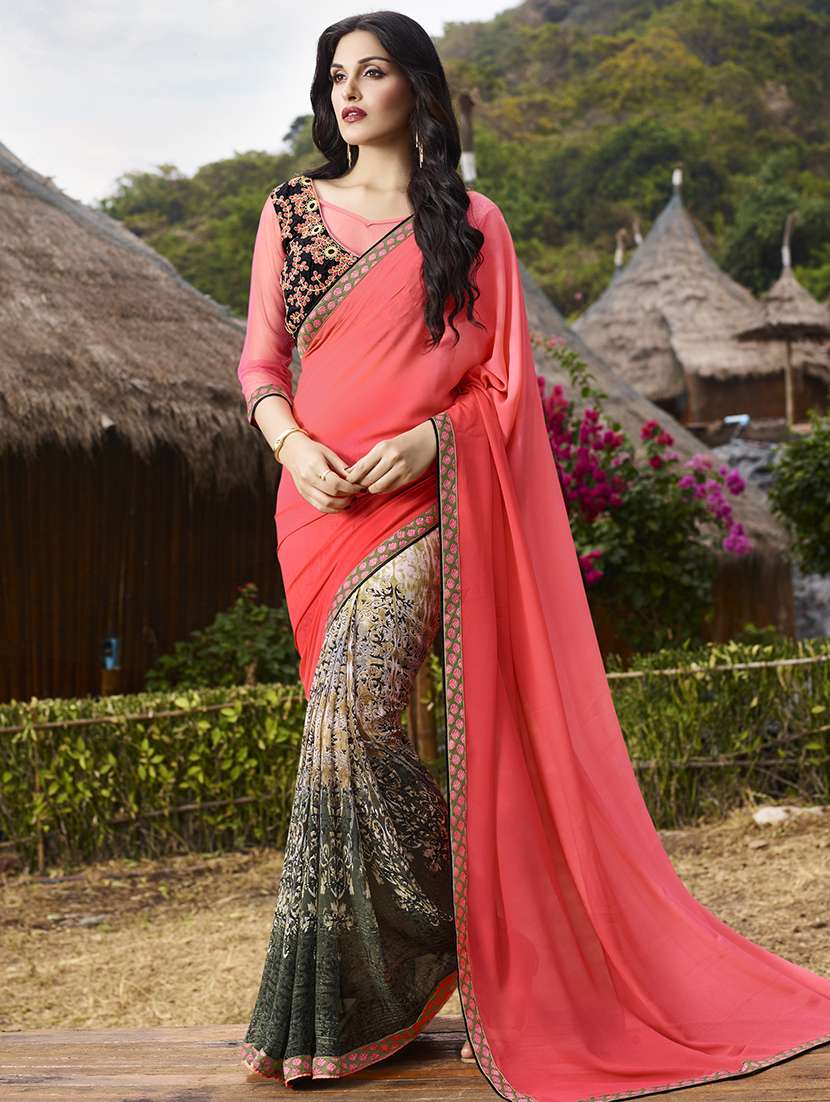 pink georgette half and half saree