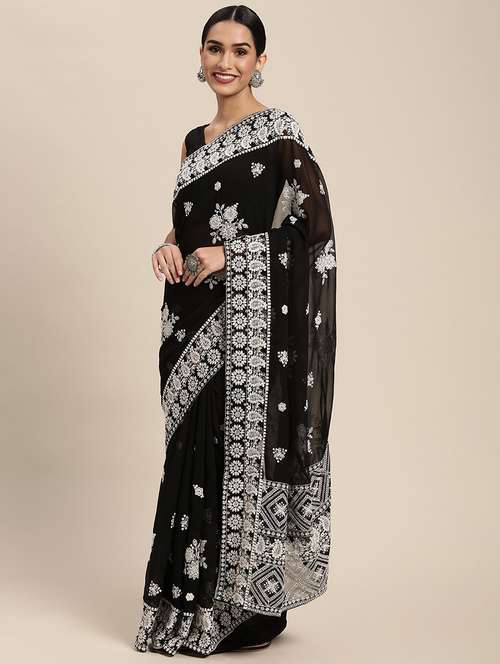- » pink georgette embroidered saree with blouse