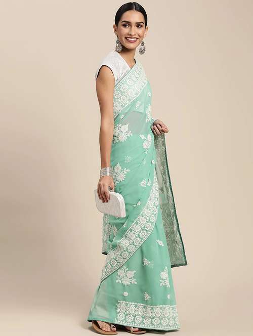 Floral embroidered saree with embroidered border