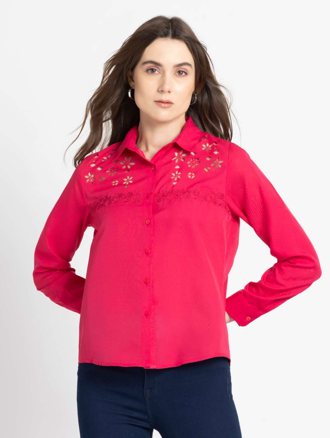 women pink solid long sleeve shirt top