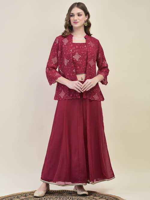 • Find gorgeous sets of ethnic wears in trending designs in magenta colors suitable for festive wear of occasions.