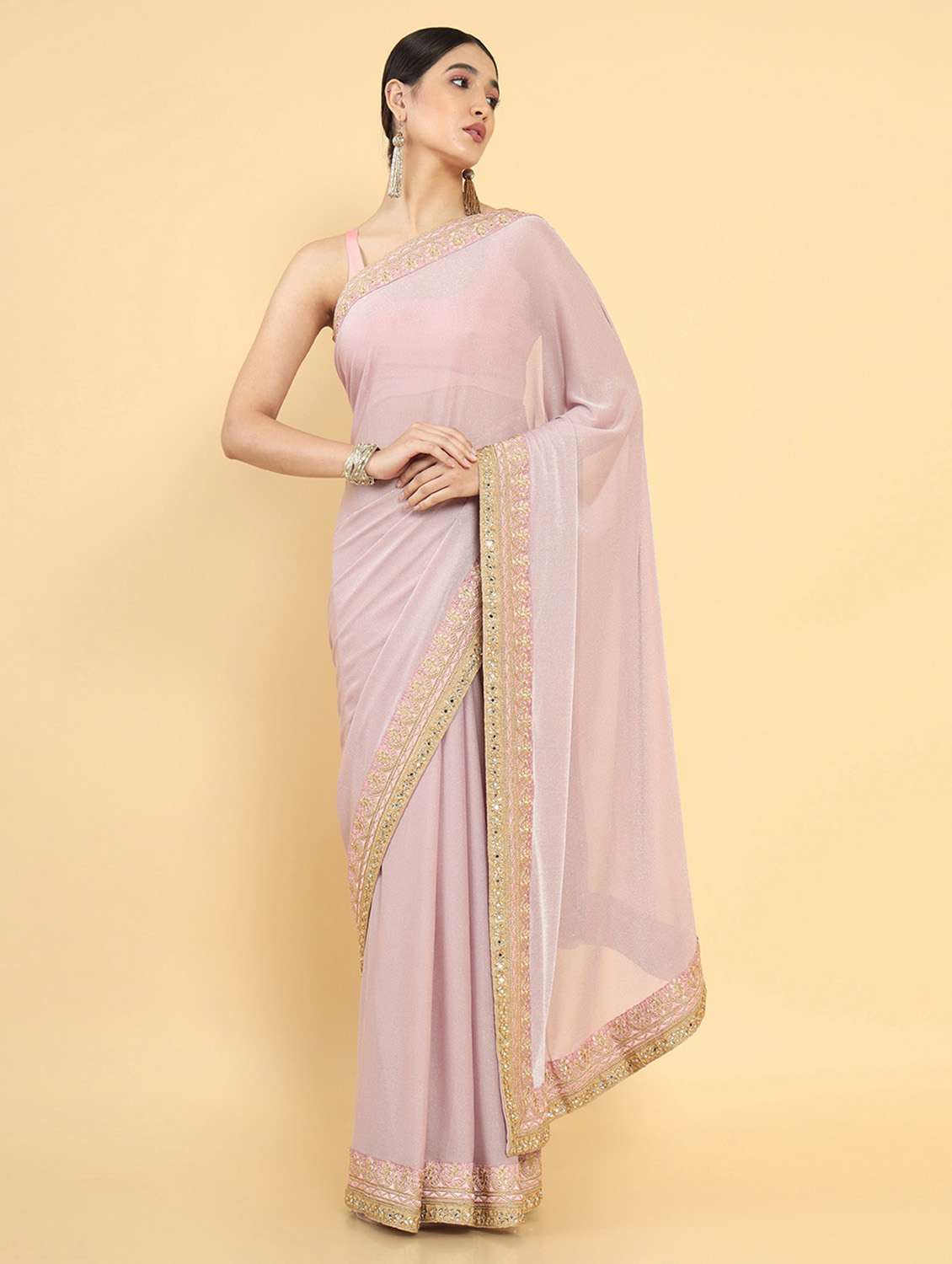 pink lace detailed saree with blouse