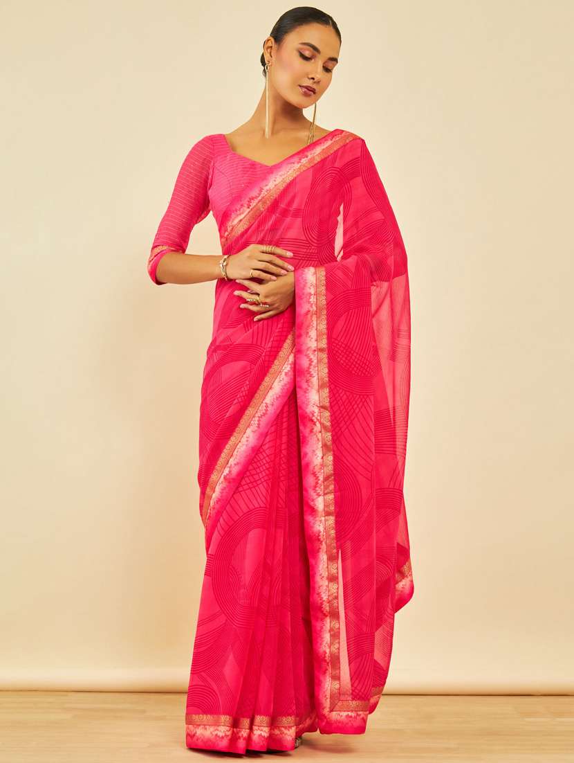 women's printed pink colored saree - 20407196 - Very Small Image - 1