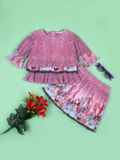 - » girls pink printed skirt stop