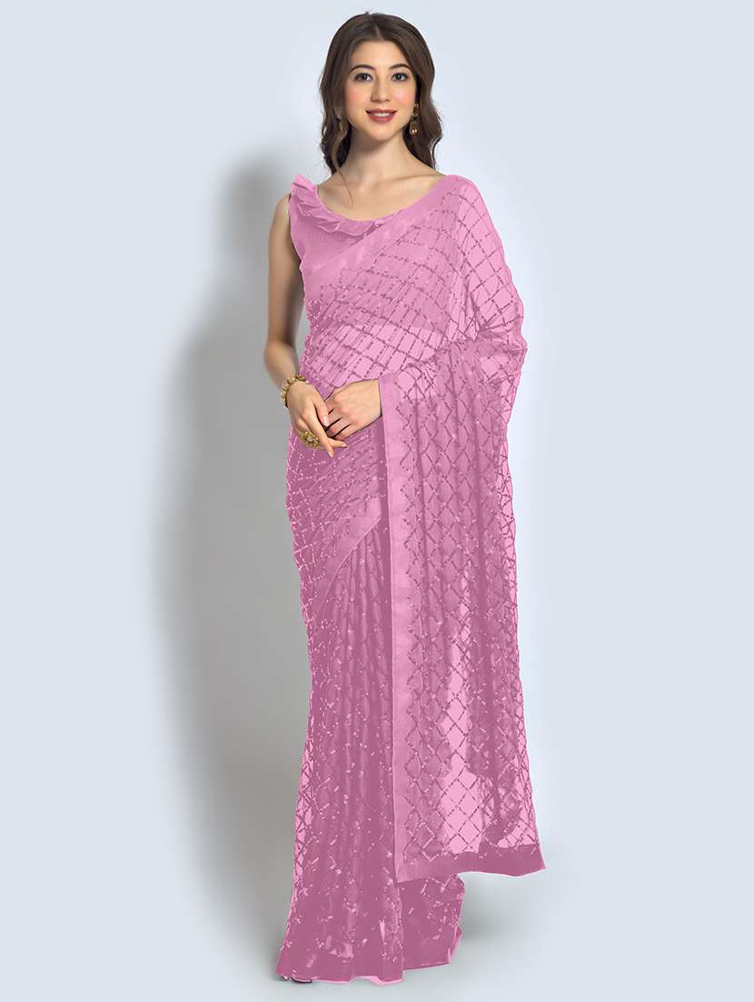 Experience timeless elegance with the Georgette Pink Saree , designed for women who appreciate exquisite craftsmanship and luxurious style. Perfect for weddings, festivals, and traditional events, this saree is a must-have addition to your wardrobe. Made from high-quality fabric, this saree offers a comfortable drape and a stunning appearance. The vibrant colors and detailed patterns make it an ideal choice for women looking to make a statement at any occasion. Whether you're attending a wedding or celebrating a festive event, this saree ensures you look your best.