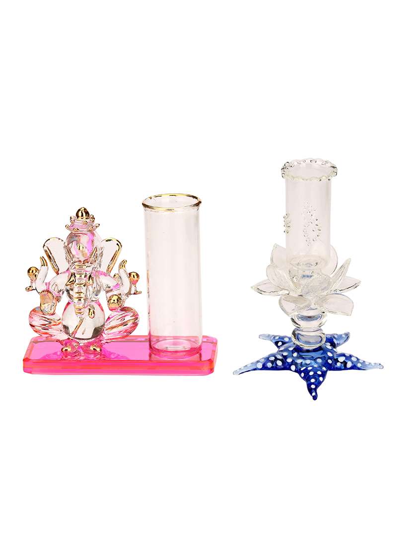 somil dual face intellectual ganesha with star candle stand & pen stand combo