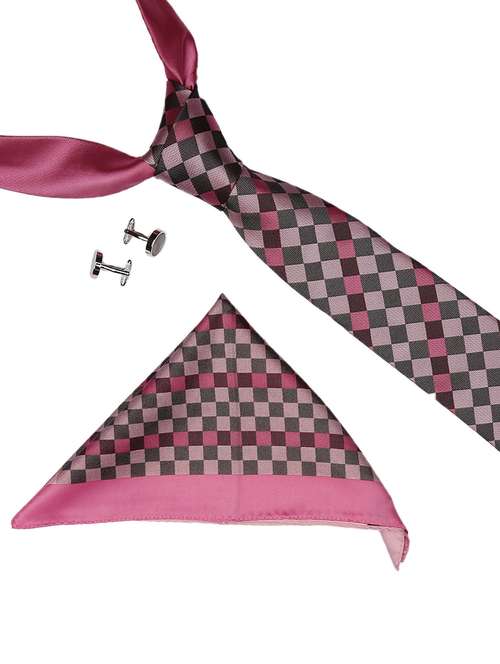 pink :: grey micro fiber tie with cufflink and handkerchief