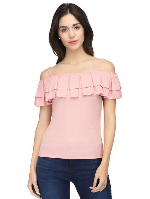 pink ruffled off shoulder top - 14864178 - Very Small Image - 1