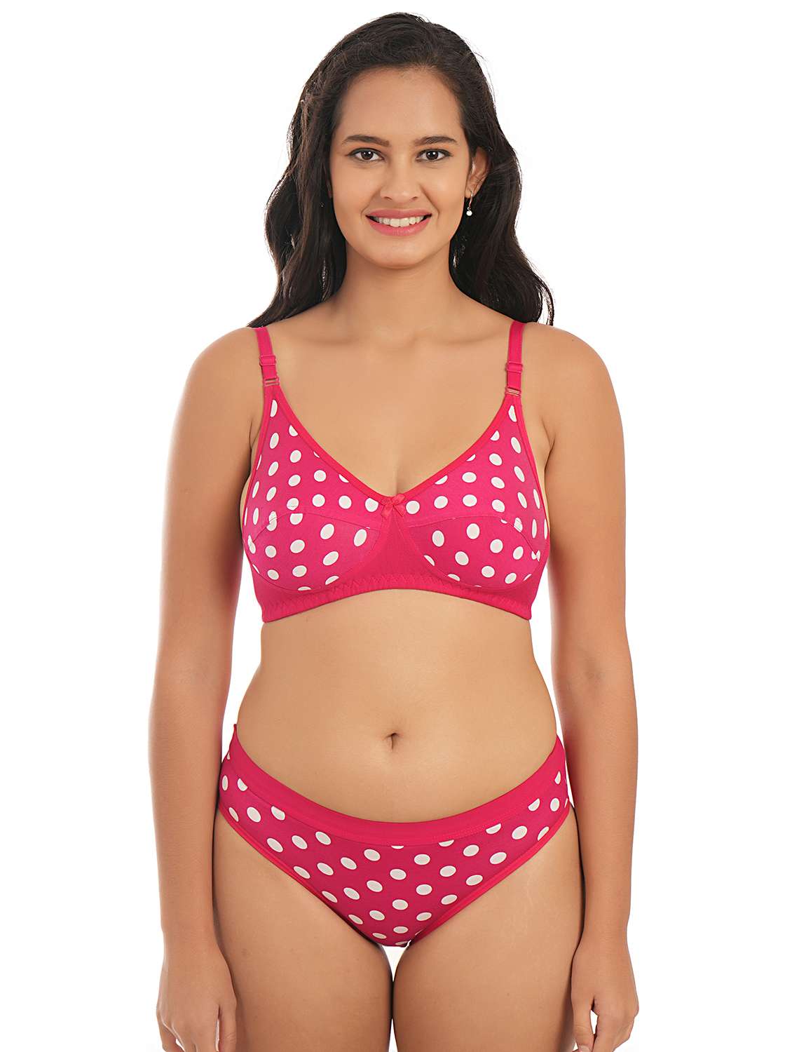 Details & Fabric: This bra and panty is made of Hosiery cotton , T-shirt B-cup women's bra and panty set. Cl &Straps: Back closure Having 2 row and 3 columns hook for proper fitting and features adjustable straps. Lift & Lining :cups provide you more support & coverage to prevent nipple show through, Non-wired and Non-Padded for all day comfort.