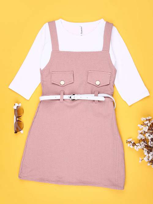 - » girls solid three quarter sleeve dungaree dress
