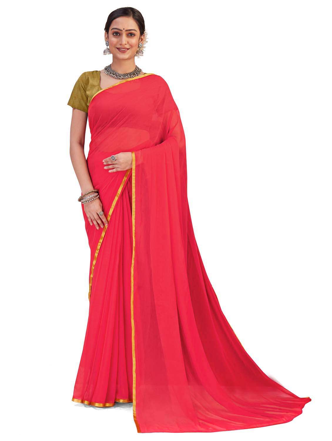 - » women's solid pink colored saree with blouse