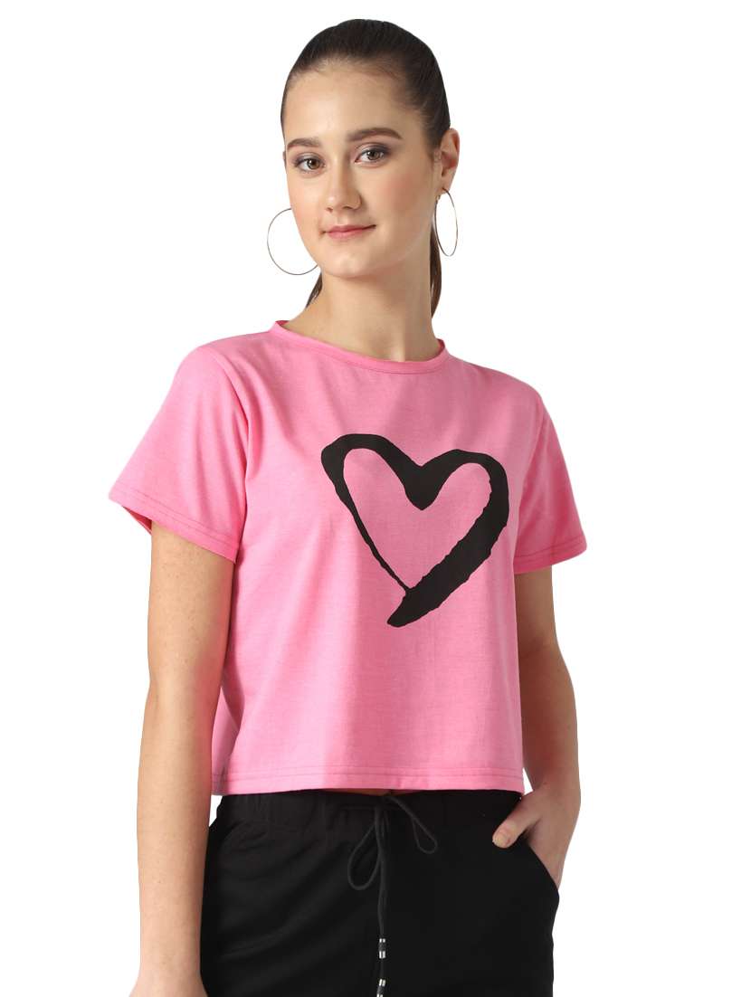 women's chest print round neck t-shirt