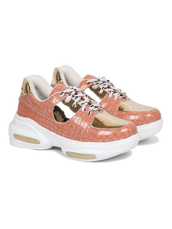 - » pink leatherette laceup sneakers