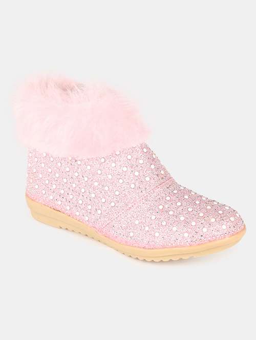 girls pink slip on boots