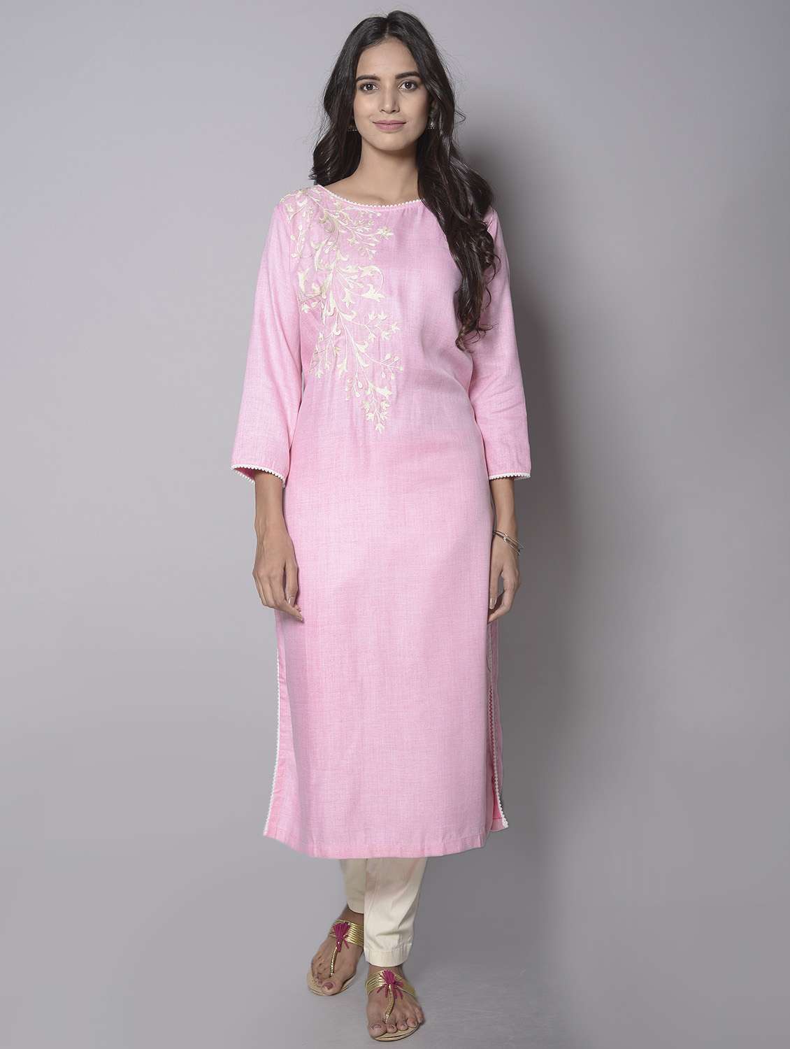 - » aas pink linen with white aari emb