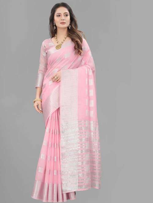 Color : Pink, Made from high-quality Cotton Linen Fabric Woven Saree, giving the saree a stunning look and feel.If you're looking for a beautiful saree to wear to a special occasion, this women's Cotton Linen Woven saree is sure to impress. With a length of 5.25 meters and an additional 0.80 meters of Cotton Linen Woven unstitched blouse material, this saree offers ample fabric to create your perfect look.Available in various colors, this saree is perfect for weddings, parties, and other special occasions. Order now and make a fashion statement with this beautiful saree.