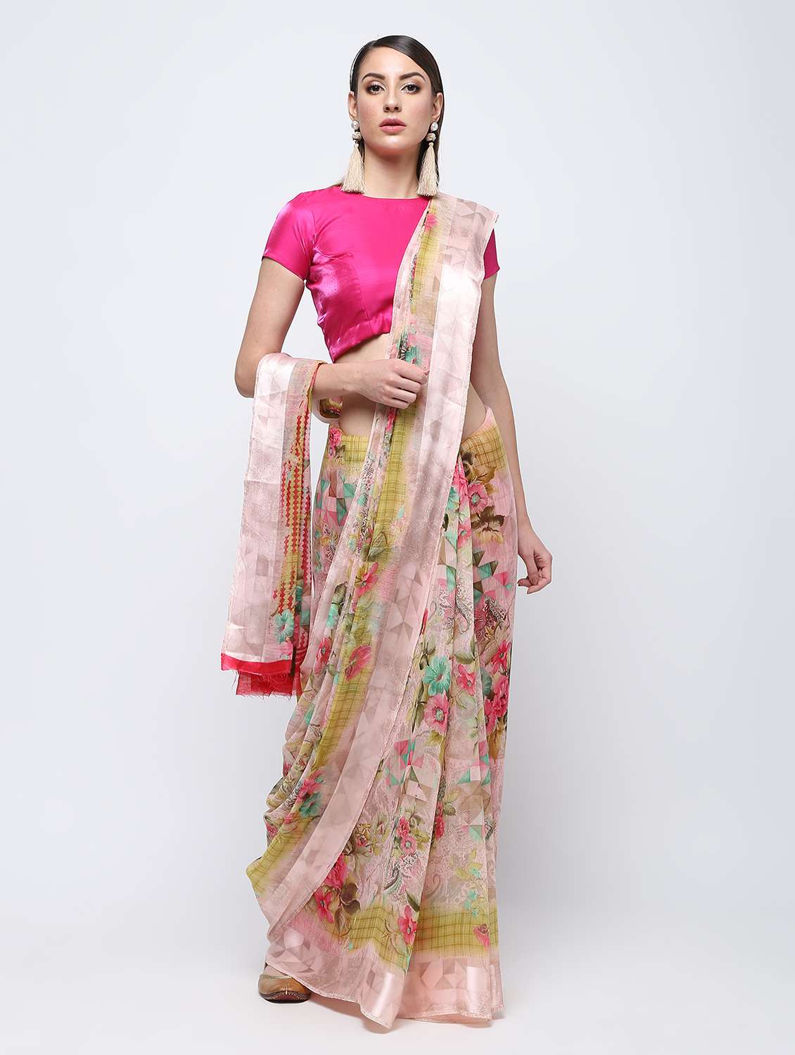 digital floral printed saree with blouse - 16249984 - Very Small Image - 1