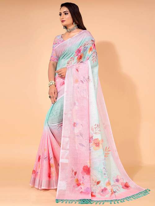 - » pink floral print saree with blouse