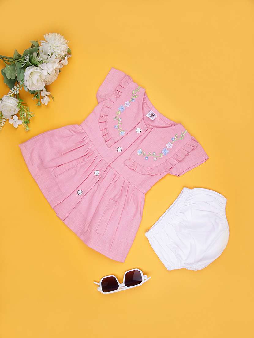 - Dress up your little ones in frocks featuring pretty patterns in cotton .