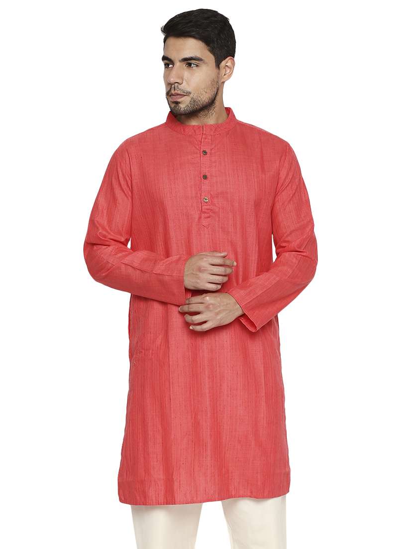 coral solid linen long kurtas kurta