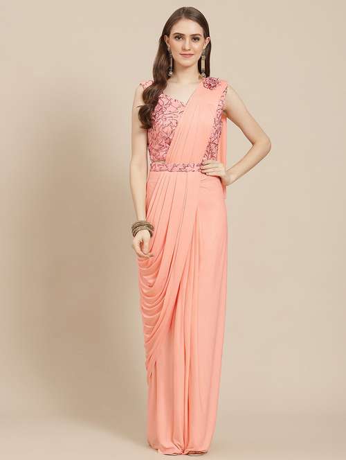 - » women's solid peach colored saree