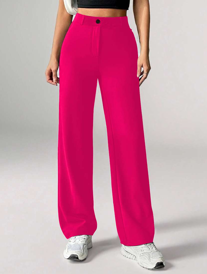 - » women solid high rise straight trouser